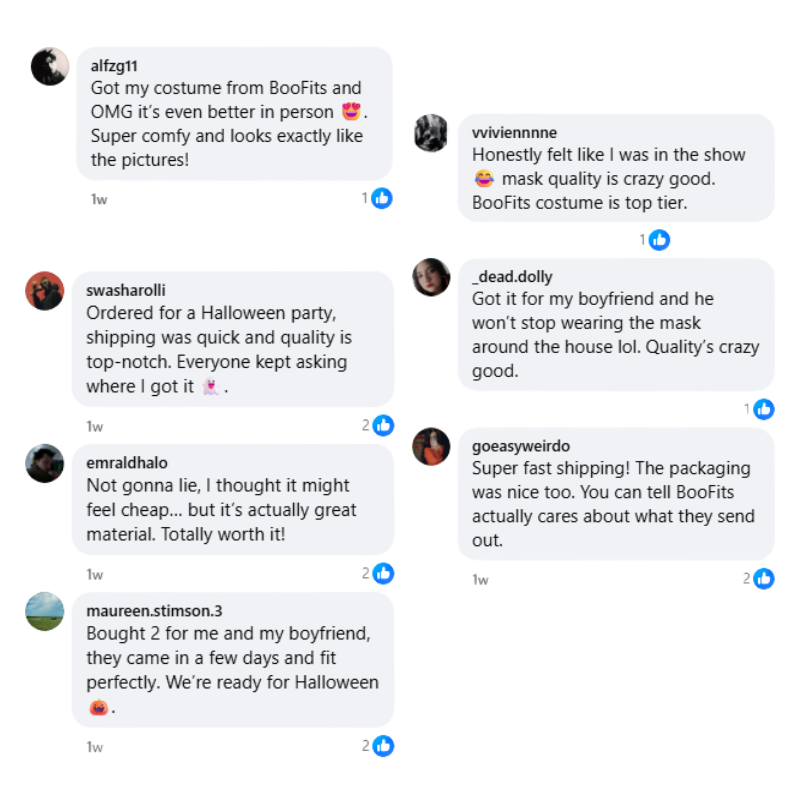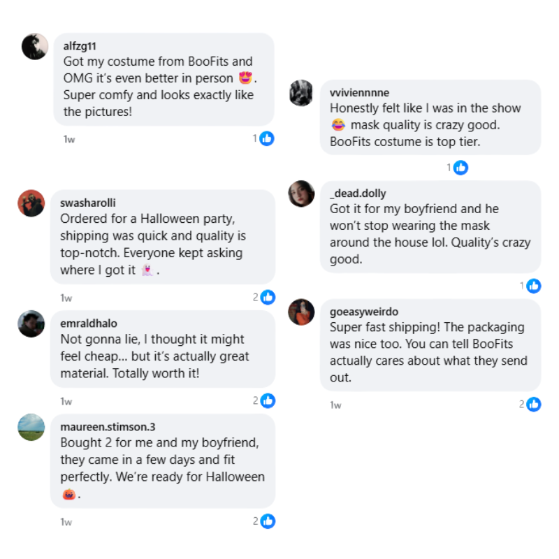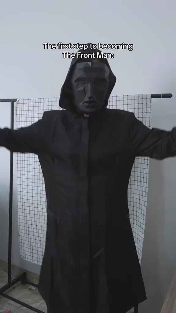 Each set includes a Front Man mask, hooded coat, and gloves.